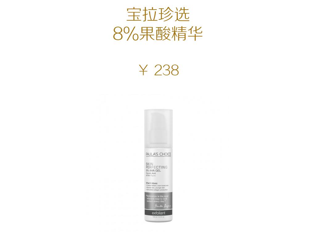 之前没有用过果酸的新手可以选择浓度较低的 8% 宝拉果酸精华。