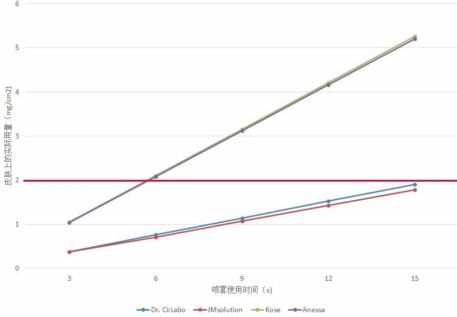 因为液化气推进剂用量比例的不同,显然不同防晒喷雾在单位时间里喷到皮肤上的实际用量差别很大。